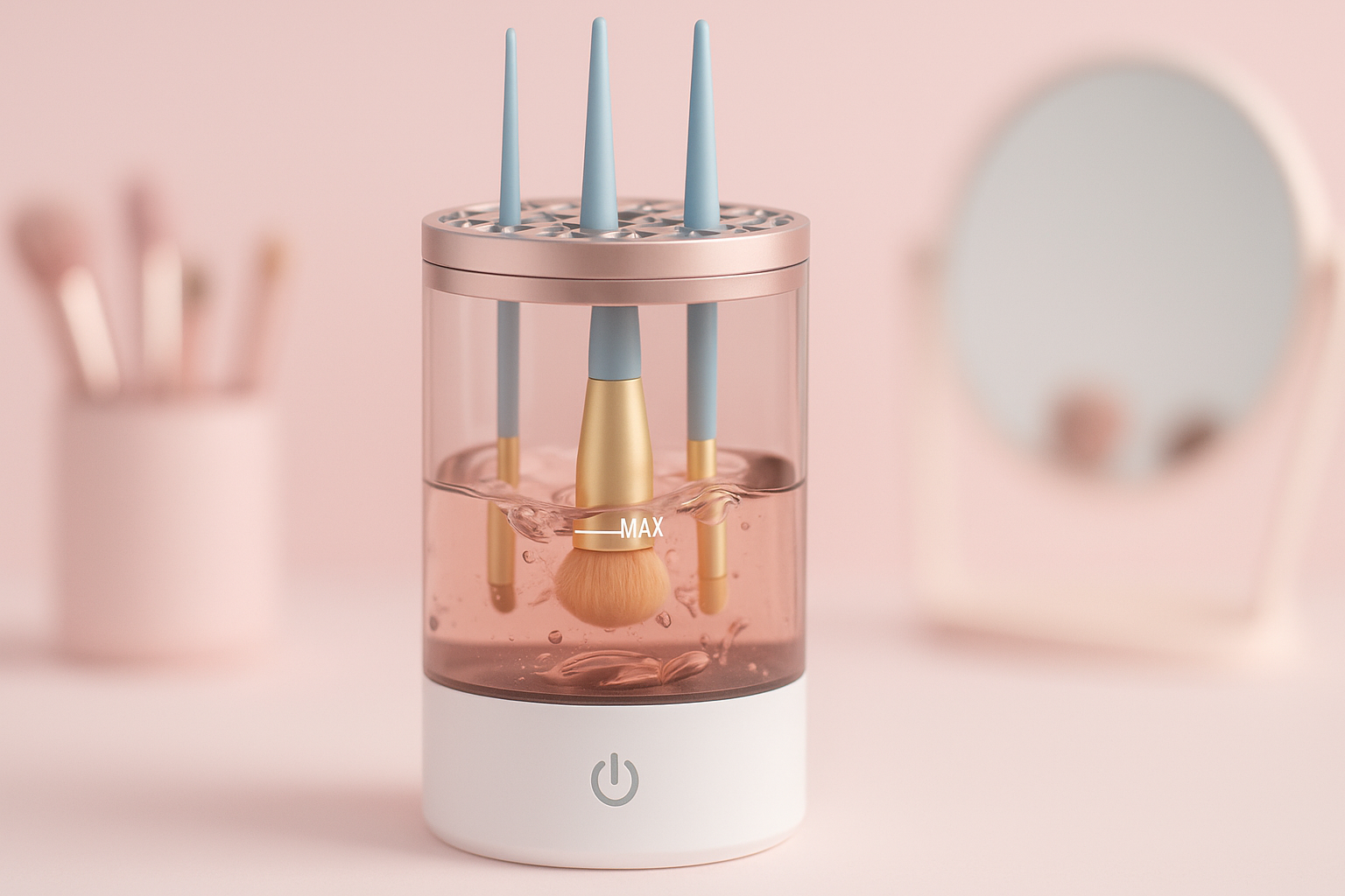 Le Blush Cleaner est un dispositif innovant conçu pour assurer un nettoyage rapide, efficace et hygiénique des pinceaux de maquillage. Grâce à sa technologie de rotation et de séchage automatique, il élimine en profondeur les résidus de maquillage, l’excès de sébum et surtout les bactéries qui s’accumulent au fil des utilisations.