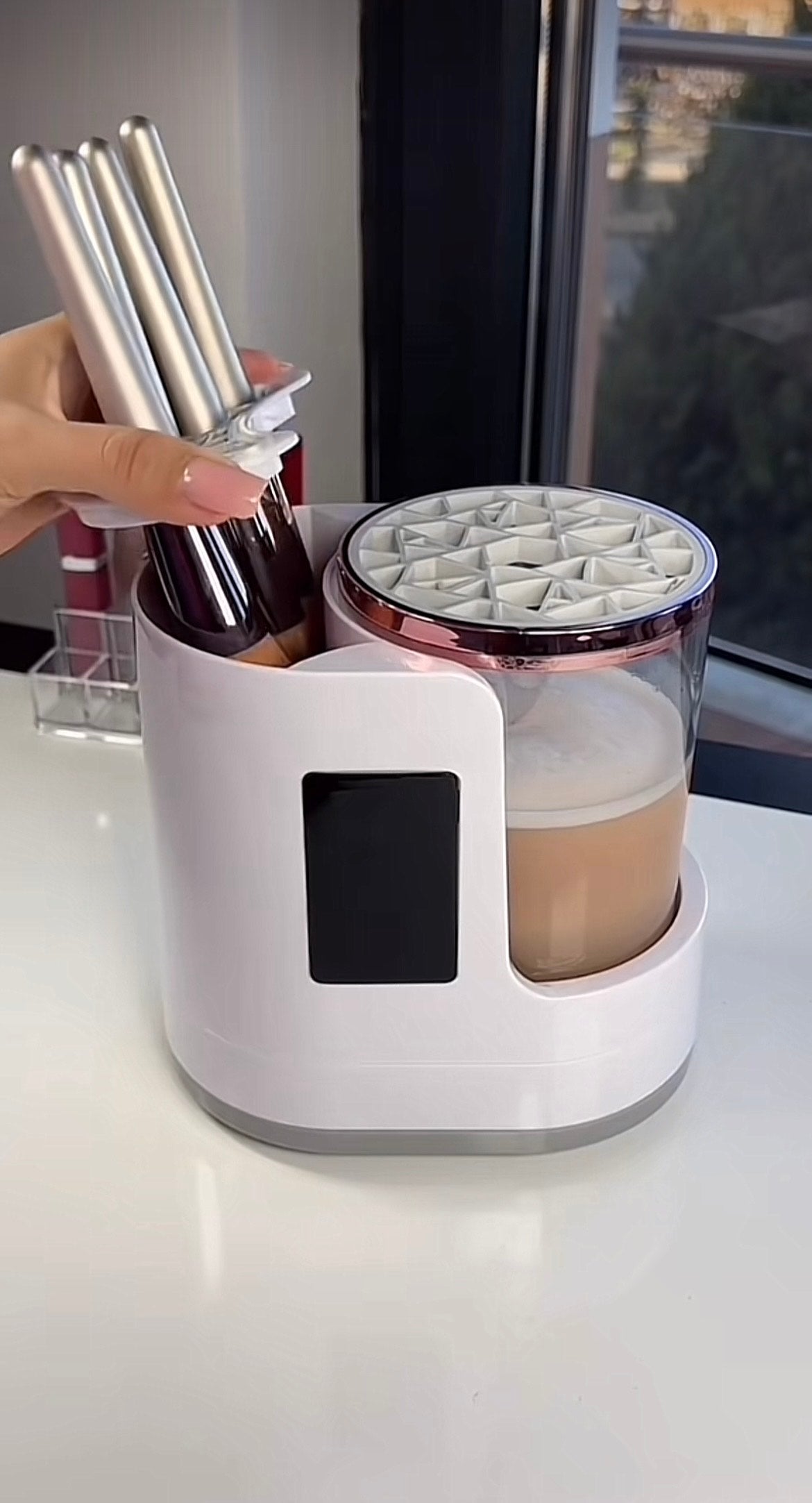 Le Blush Cleaner est un dispositif innovant conçu pour assurer un nettoyage rapide, efficace et hygiénique des pinceaux de maquillage. Grâce à sa technologie de rotation et de séchage automatique, il élimine en profondeur les résidus de maquillage, l’excès de sébum et surtout les bactéries qui s’accumulent au fil des utilisations.